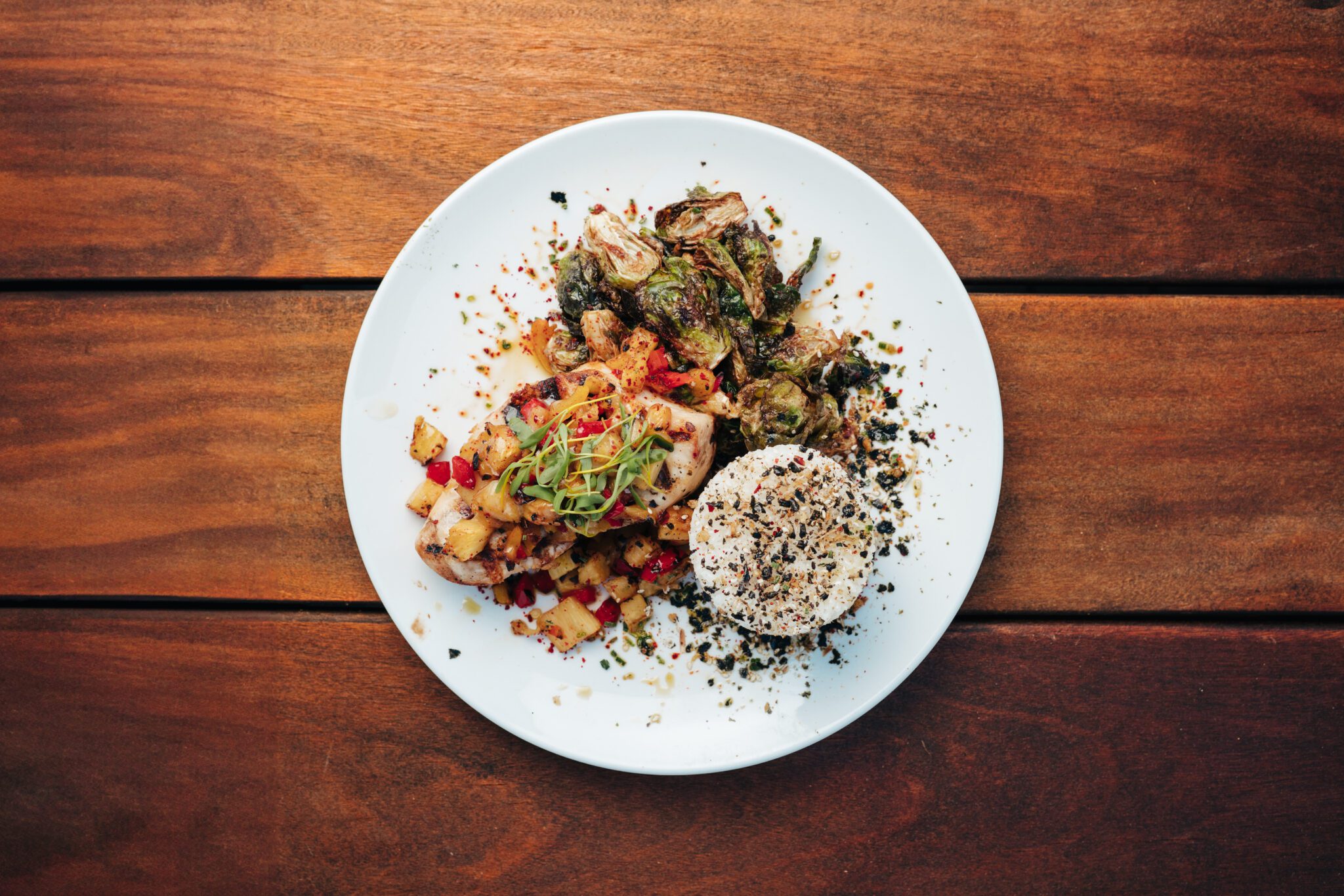Blueberry, Peach, Cucumber, Feta, Basil, Chickpea, Arcadian Mix, Lemon Vinaigrette
