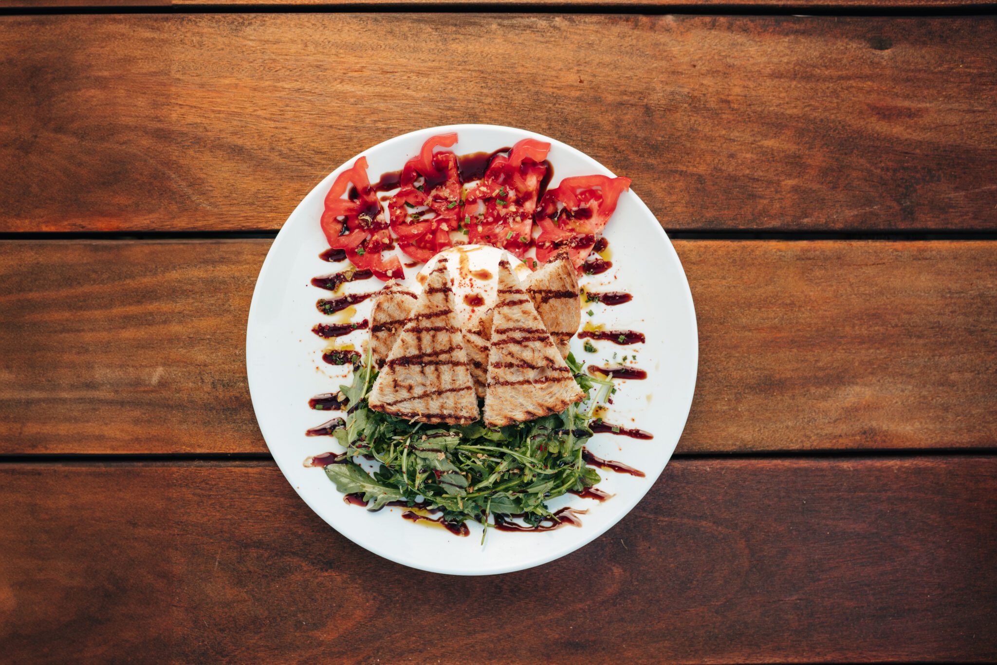Arugula, Heirloom Tomato, Burrata, Basil, Balsamic Glaze, Sourdough, EVOO
