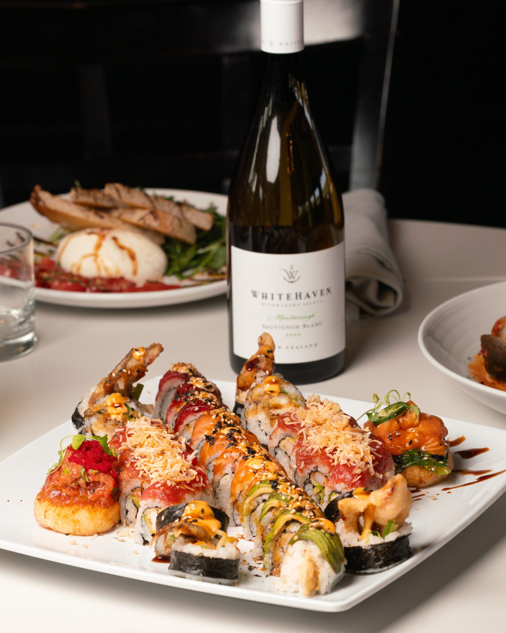 Tempura Shrimp, Scallions, Avocado, Sirloin, Tuna, Torched Scallop, Eel Sauce, Sesame Seeds